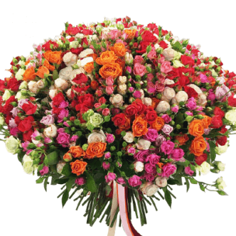Стоимость букета зависит от количества роз, которое регулируется в меню конструктора с помощью "+/-". При этом, чем больше вы роз заказываете, тем дешевле цена одной розы в букете.